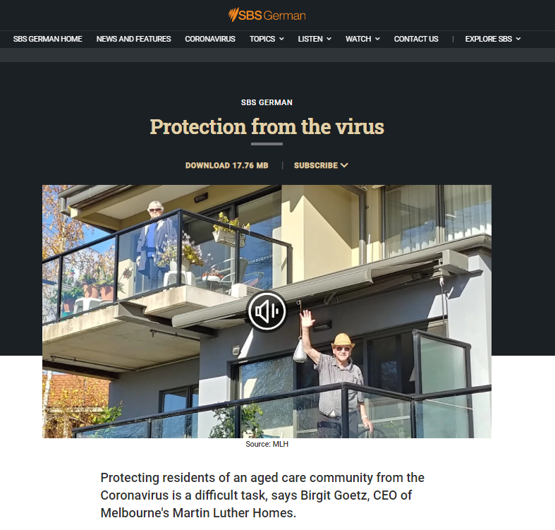 As a multicultural organisation, we also embrace the media diversity in Australia. So, when SBS German came knocking to find out how Martin Luther Homes is handling the Covid-19 pandemic, our CEO, Birgit Goetz, didn’t shy away from answering questions in German.