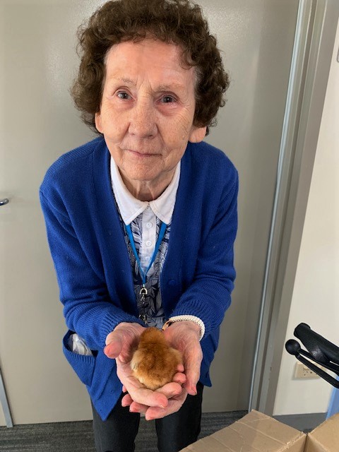 A second year in row and just in time for Easter, we are taking part in the Henny Penny Hatching program. This means, we have our very own little chicks at Martin Luther Homes for about two weeks.