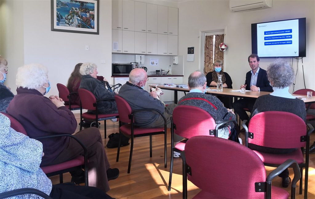 In the middle of July, our residents from the Independent Living Units (ILUs) came together to meet with some special guests. Jackson Taylor (the local MP), Heather McTaggart (the manager of the Basin Community House), and Sally Clark (from the Knox City Council) visited our ILUs for an information session and morning tea. The meeting sparked a lot of interested and many residents of our retirement village came to talk to our guests.
