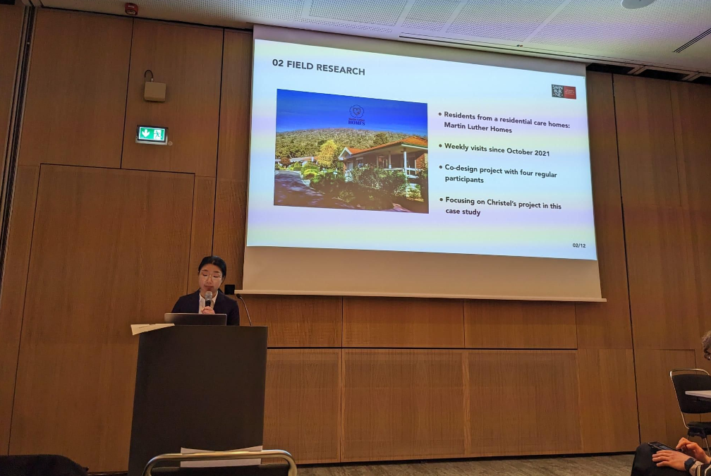 The team also recently had the opportunity to present their work to an international audience at a conference in Germany. Mia presented a case study exploring the building of confidence of older adults in the use of technology. The study focused on a co-designed project in which the residents created their own digital stories.