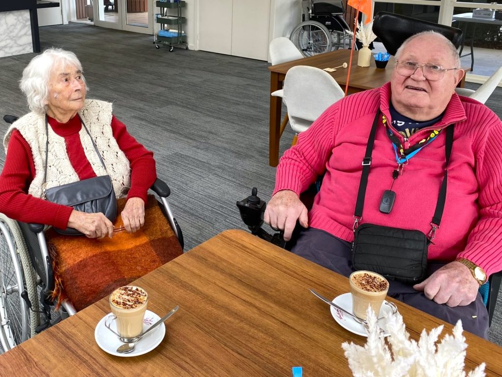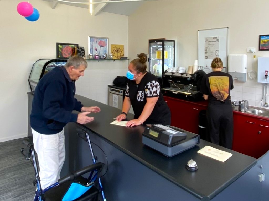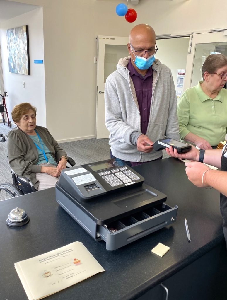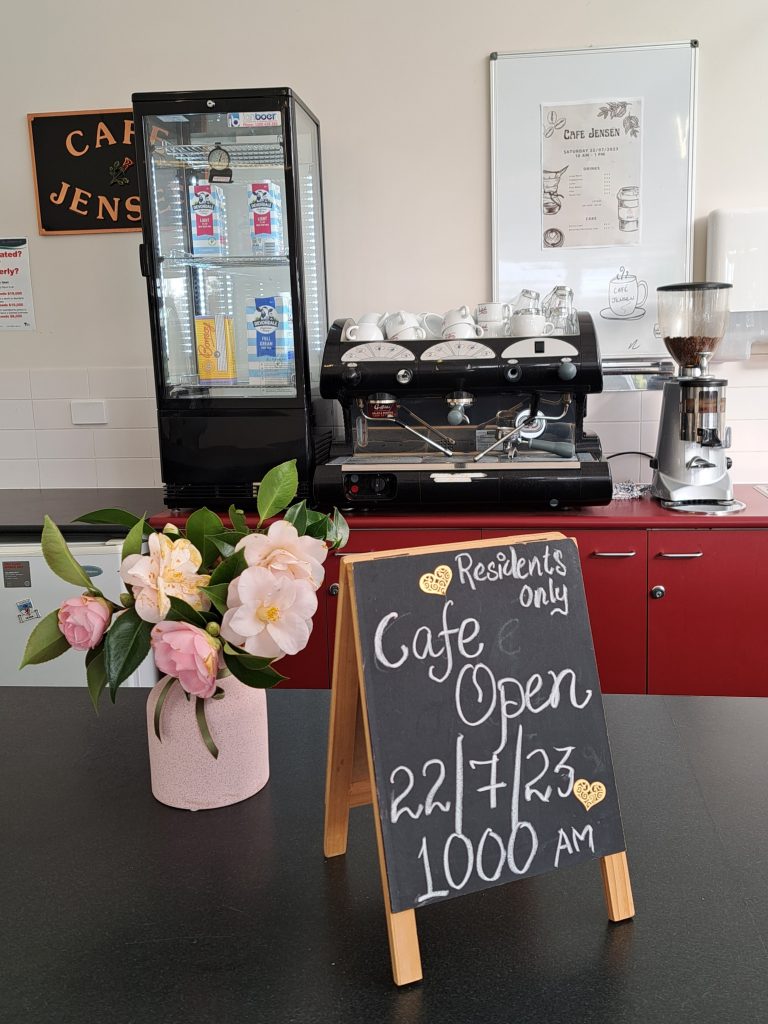 We have reached a milestone this year: We have (finally) opened up the Café Jensen for our aged care residents on one day in July! We had delicious coffee, tea, and cake for sale. Christine and Jessica, the daughters of our lovely concierge staff Ulla, have volunteered to assist in this café reopening. Café Jensen was only open for our aged care residents. However, aged care visitors and staff were able to get take-away coffee & cake.
