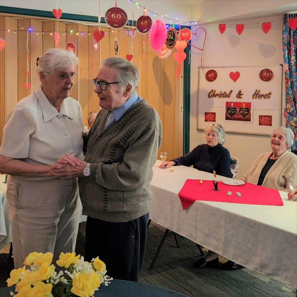 At the beginning of the month, we have celebrated a special occasion: the 60th wedding anniversary of two of our residents, Christel and Horst. The two have lived at Martin Luther Homes (MLH) for almost 13 years and have contributed significantly towards creating the lovely community that we have here at MLH. Horst now lives in the aged care facility and Christel in the retirement village, so the two had not only one (surprise) party but two.