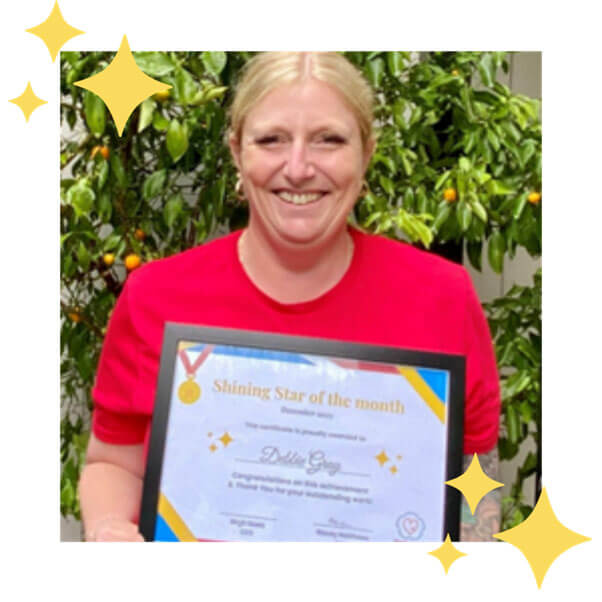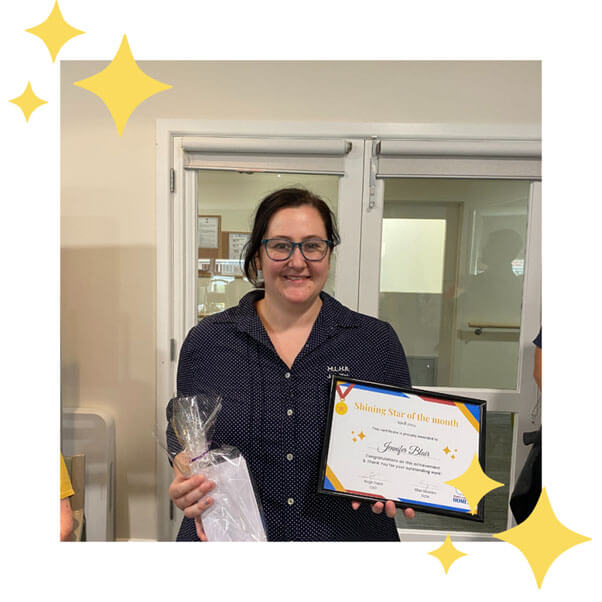 As well as her Shining Star nominations, Robyn received a special mention from Ruth (Rosters Coordinator) Robyn does not hesitate to pick up shifts and is always flexible which makes filling the roster so much easier.