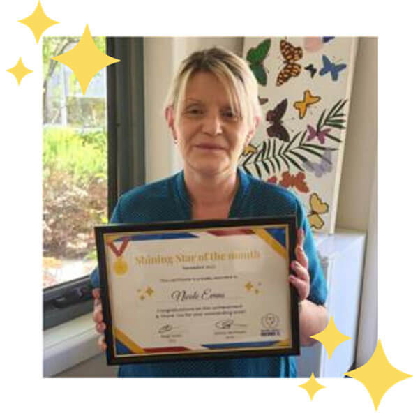 How does it work? Everyone (staff, older people, and visitors) can nominate a staff member. We are looking for staff members who have demonstrated outstanding work ethics. Older People (via the advocacy group) and management are involved in the decision of the ‘Star of the month’.
